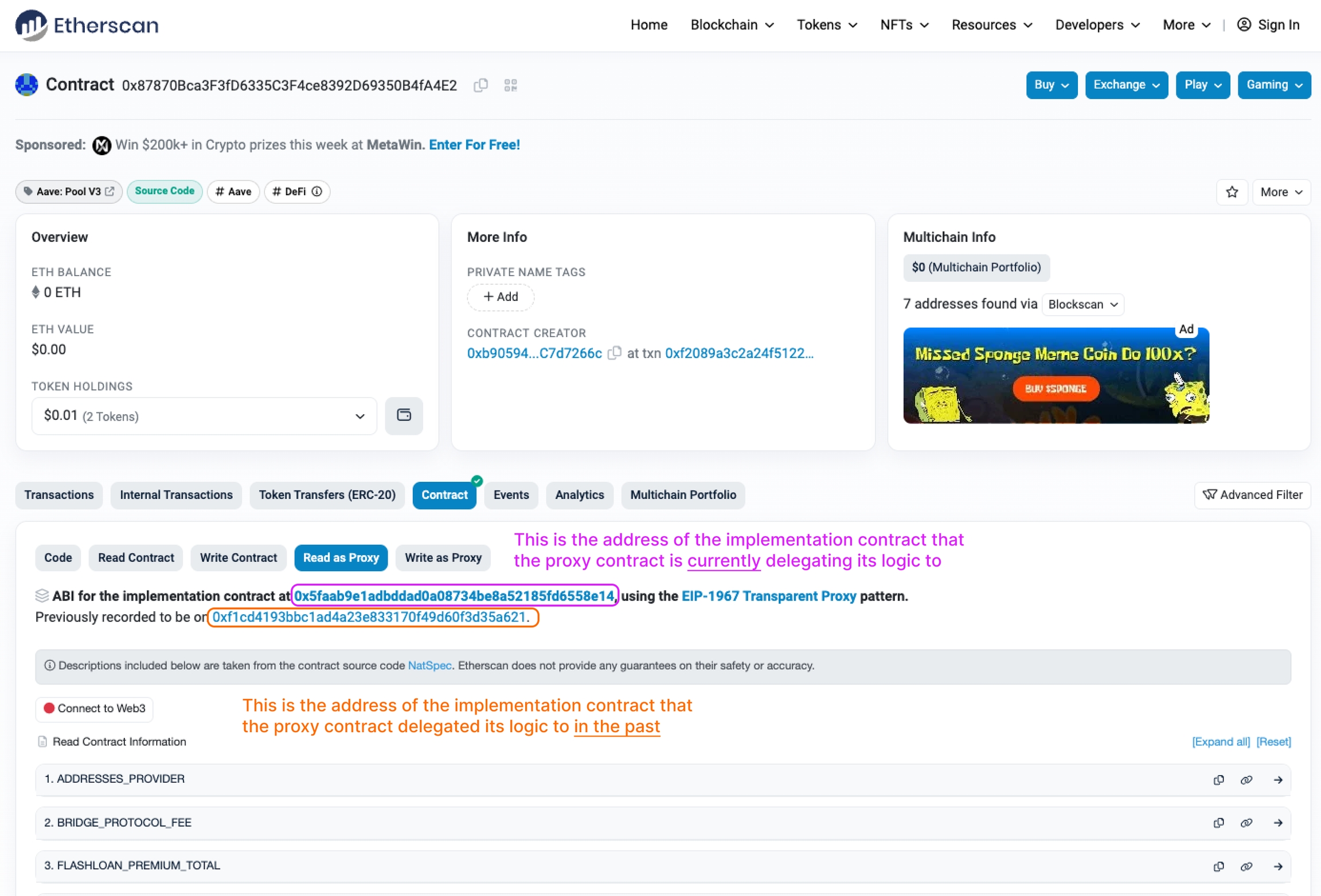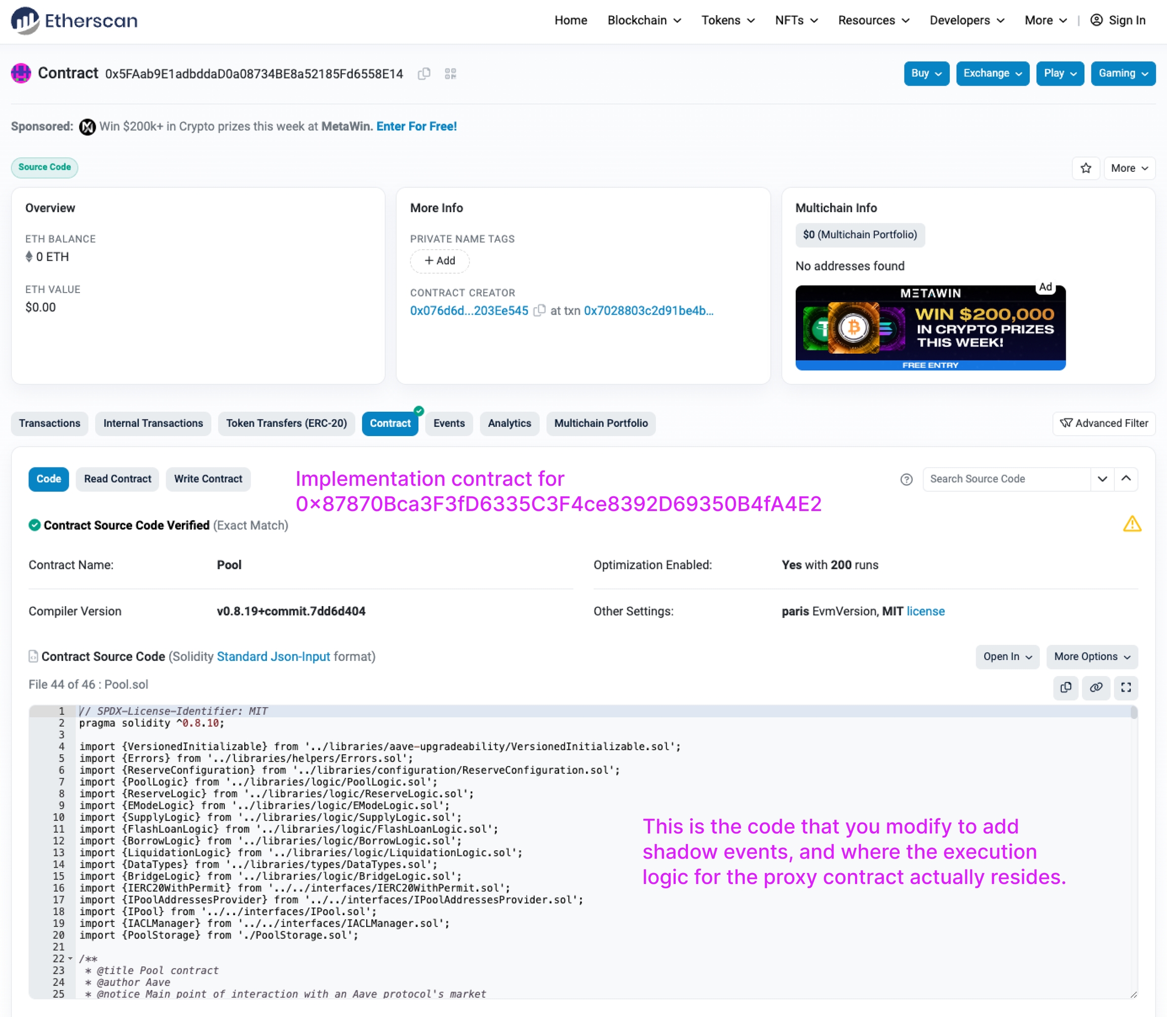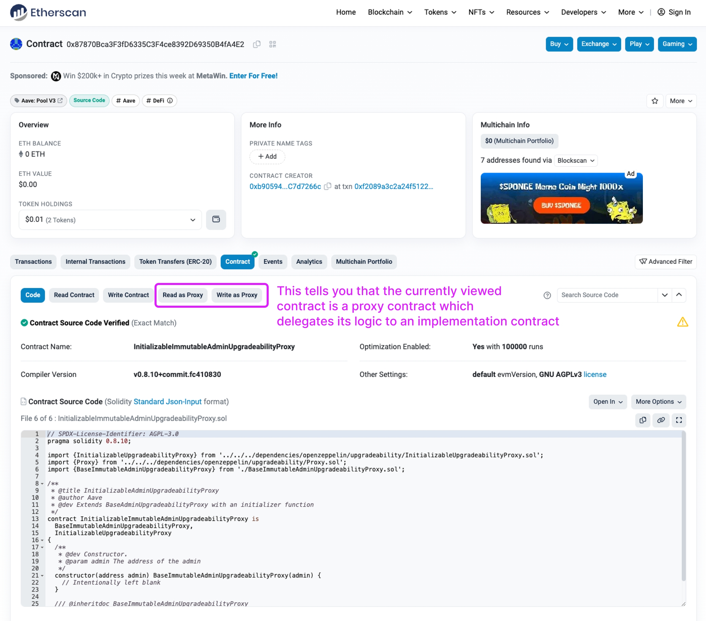Here's the Aave V3 Pool contract, which uses a proxy pattern, as an example.
