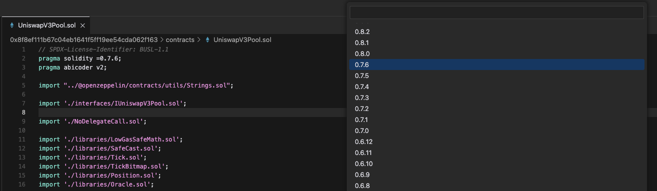 pragma solidity =at the top of the contract