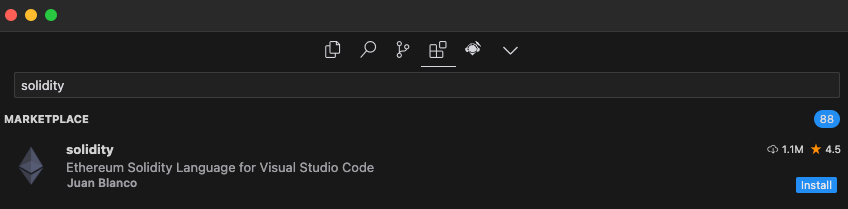 Search "Solidity" β select the Solidity VSCode extension by Juan Blanco β Install