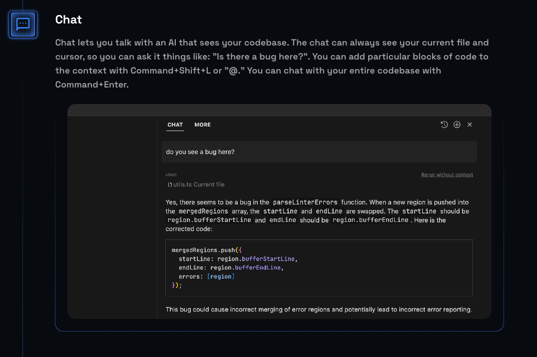 Cursor is a GPT-4 integrated IDE built on top of VSCode. Using this is highly recommended for beginners to Solidity or non-engineers (e.g. data analysts), as it has a number of benefits: